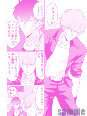 問答無用のラブハメホモSEXが幕を開ける…♡オリジナル漫画『CosmoVirem』(web上ではMode:Comic)の派生作品で、そちらに登場するクロノス(仮)×トーンのR18BL本です。 内容についての説明はサンプル内に記載しています。